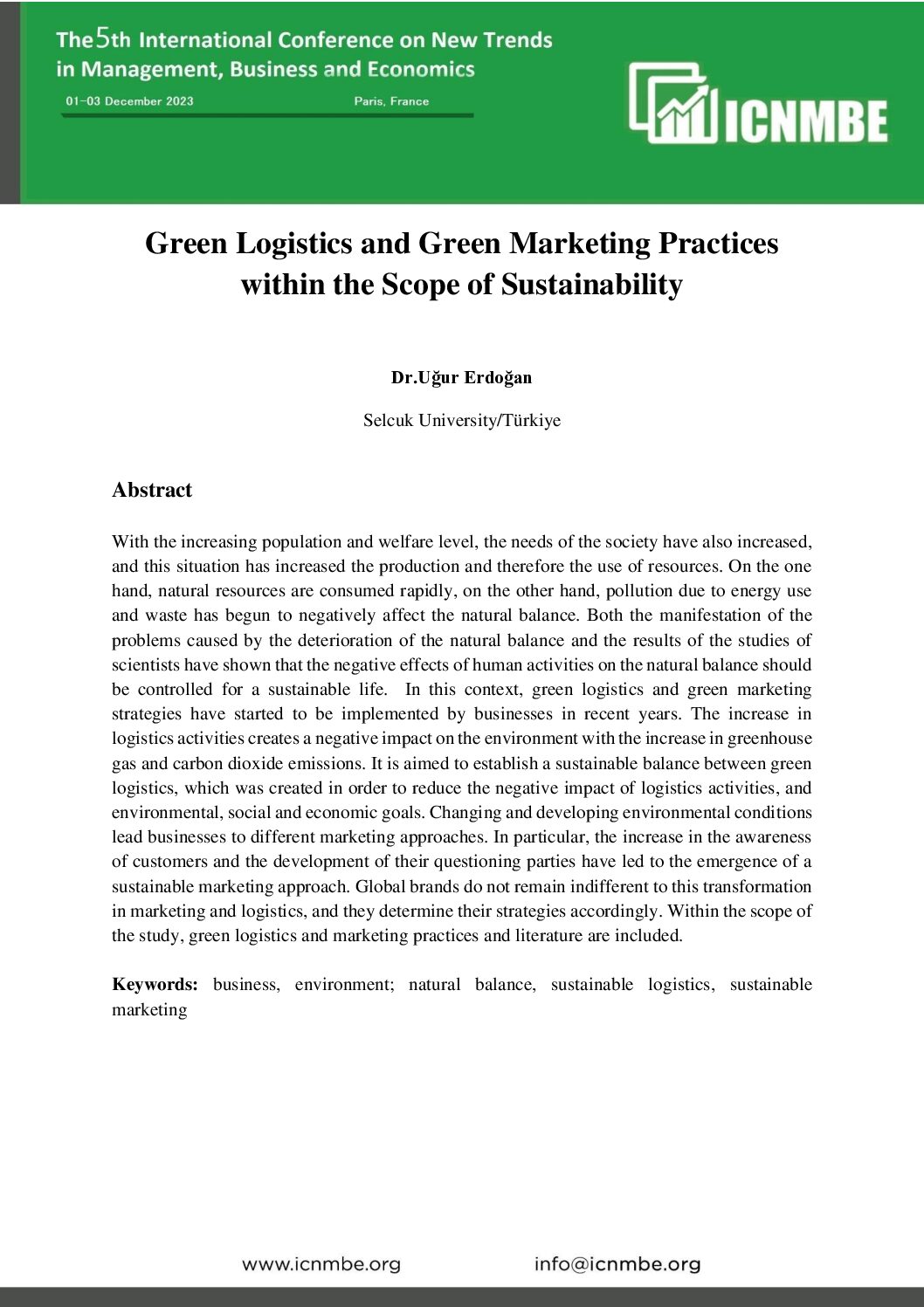 Proceedings of the 5th International Conference on New Trends in Management, Business and Economics
