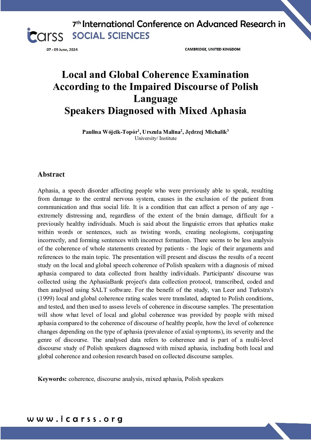 Proceedings of the 7th International Conference on Advanced Research in Social Sciences